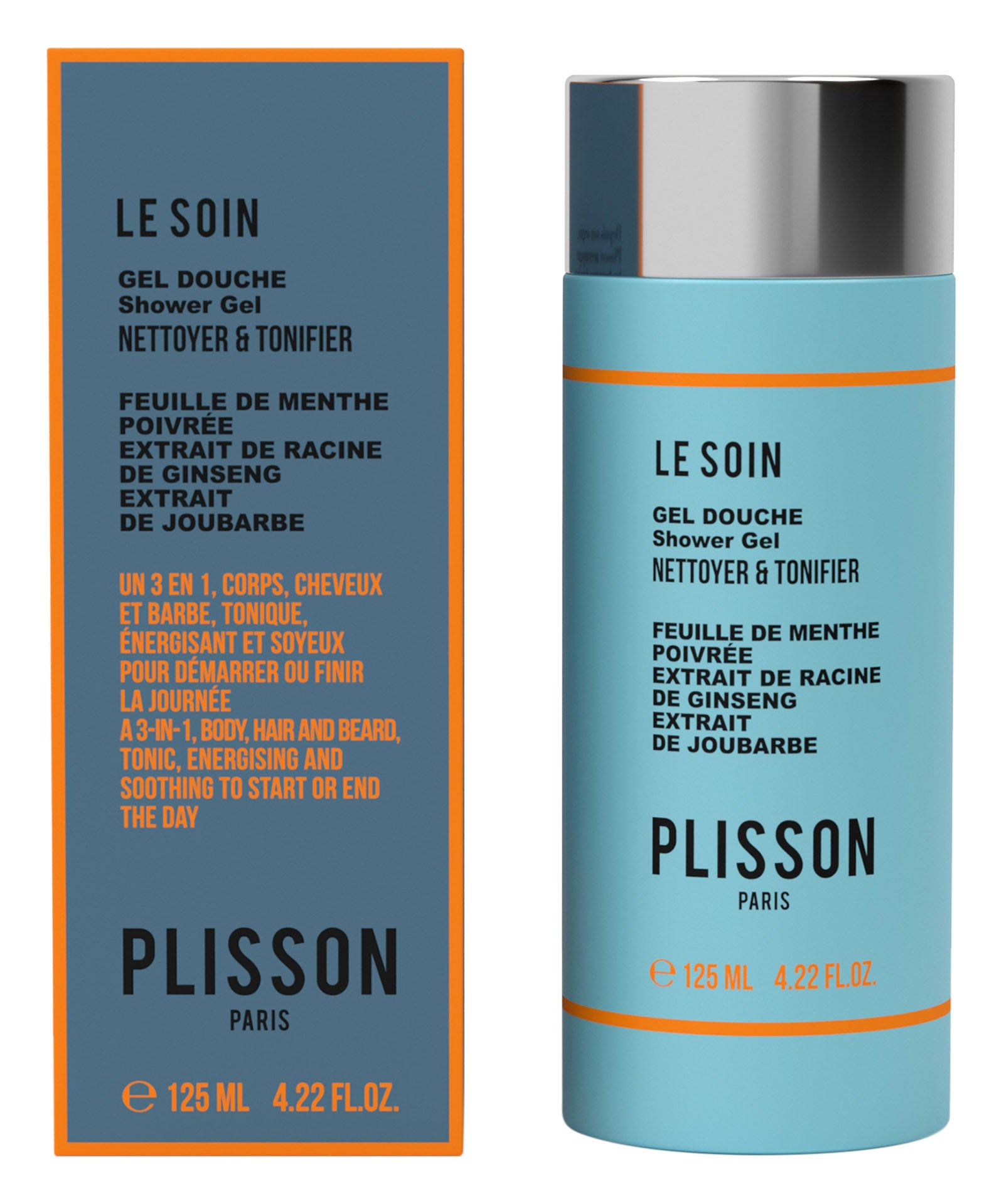Products benefit: the 3-in-1 shower gel is specially formulated with natural ingredients to clean the body, hair and beard. A natural formulation that is as practical as it is effective for a multifunctional shower gel. Ginkgo biloba restores the skin's radiance and protects it from external aggressions ( pollution and other environmental factors). It also increases capillary resistance by promoting tissue irrigation and thus provides a detoxifying action. Ginseng is a powerful active ingredient for toning and firming the skin. It is also known to strengthen the scalp and stimulate hair growth. Houseleek protects and regenerates the skin and scalp. A perfect daily product for soft, moisturized, refreshed and stimulated skin, as well as stronger and shinier hair and beard. One bottle for the whole body. The twist cap allows for a controlled distribution of the product.
