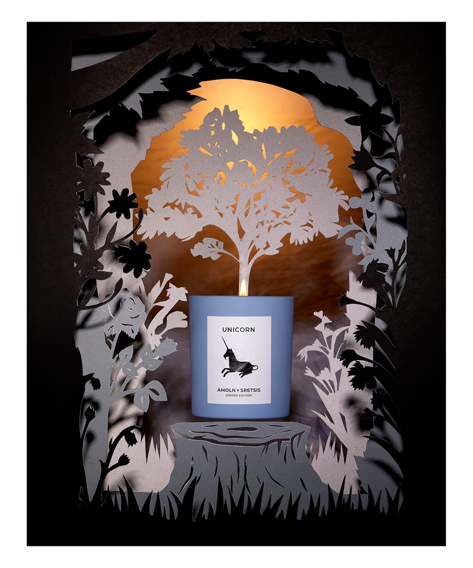 Nata da una passione comune per l'immaginazione trascendente, i ricordi coltivati, i materiali pregiati e la sostenibilità artigianale, la candela Unicorn unisce la sottile sensibilità olfattiva di Amoln alla fantasia fantastica di Sretsis. Eterei e sempre presenti nelle mitologie, gli unicorni si manifestano magicamente solo quando è necessario. La candela Unicorn fa rivivere il profumo e l'essenza degli unicorni lasciati dopo una scorribanda tra i favolosi pascoli verdi e le aiuole.