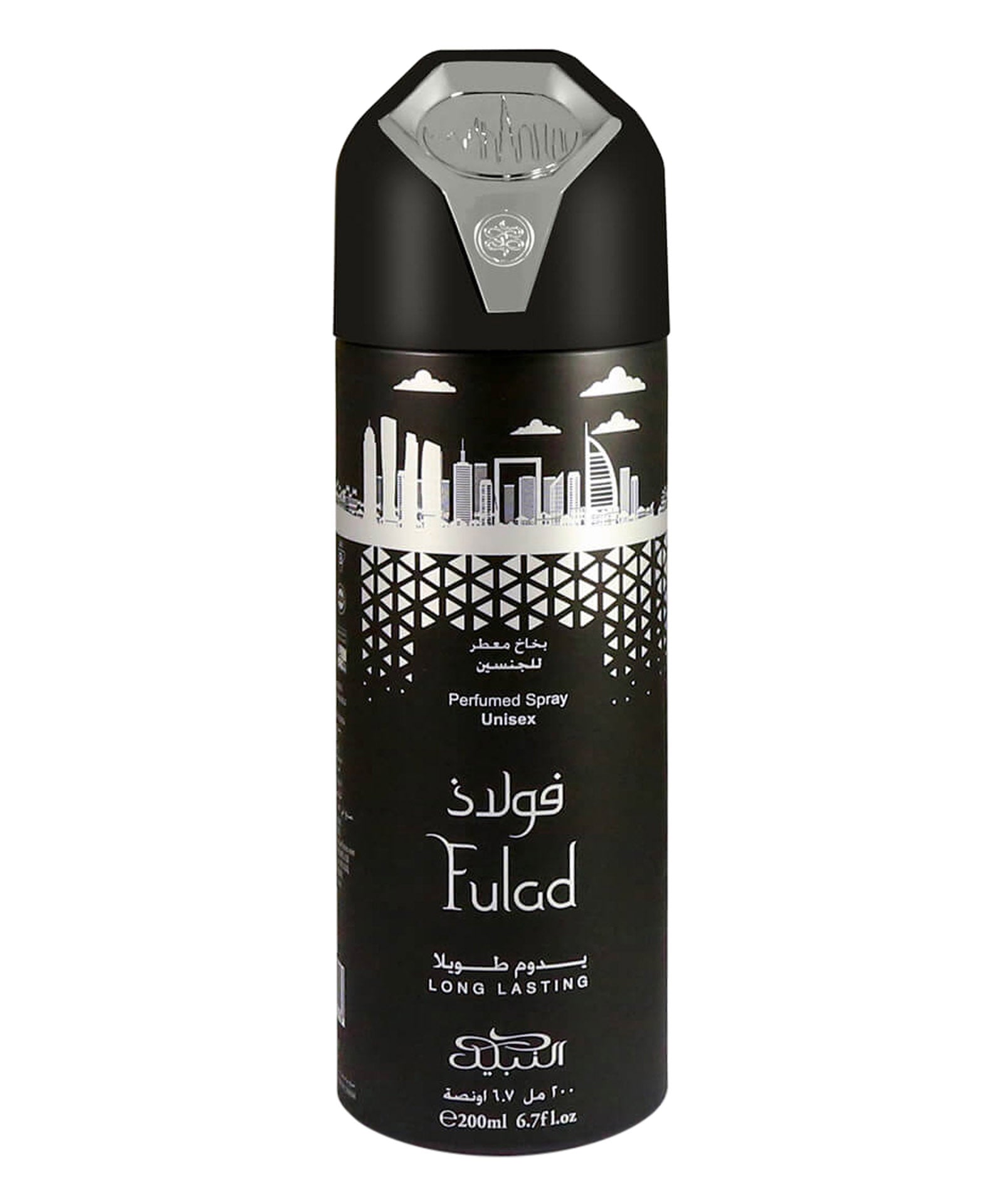 Fulad Nabeel body spray unisex è felicità, libertà e voglia di viaggiare combinati in una bottiglia che ti prende per mano e attraversa cortili bagnati dal sole con allettante gelsomino. Circondato da una mistica e incandescente radiosità solare, ingrandisce il mondo intorno a te con gloria, generosità e gentilezza. Incarna una nuova ondata di potere, talento e connessione con il mondo.
