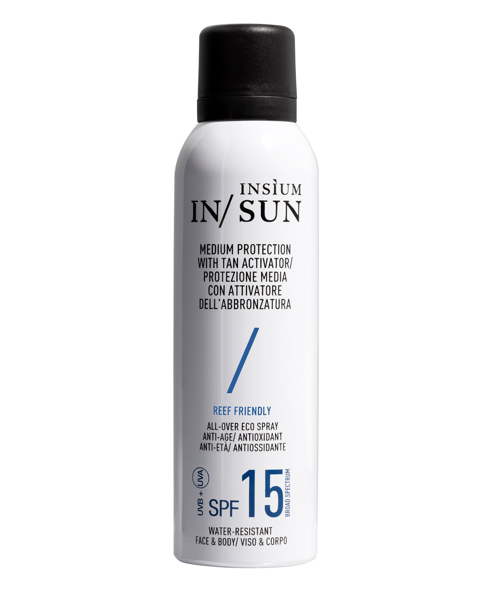 Tutte le protezioni IN/ SUN (SPF 15, SPF 30 e SPF 50) contengono filtri solari rispettosi delle barriere coralline (REEF FRIENDLY) e testati per garantire una protezione sicura ed efficace bloccando i raggi UVA e UVB. Resistenti all’acqua, includono un COMPLESSO di attivi in grado di accelerare ed intensificare l’abbronzatura e ripristinare la barriera cutanea. Oltre ad essere ricco di antiossidanti ed estratti vegetali, IN/ SUN offre un'abbronzatura naturale, luminosa e duratura, preservando la giovinezza della tua pelle e la salute del nostro pianeta. Texture leggera e setosa che si assorbe all'istante.
